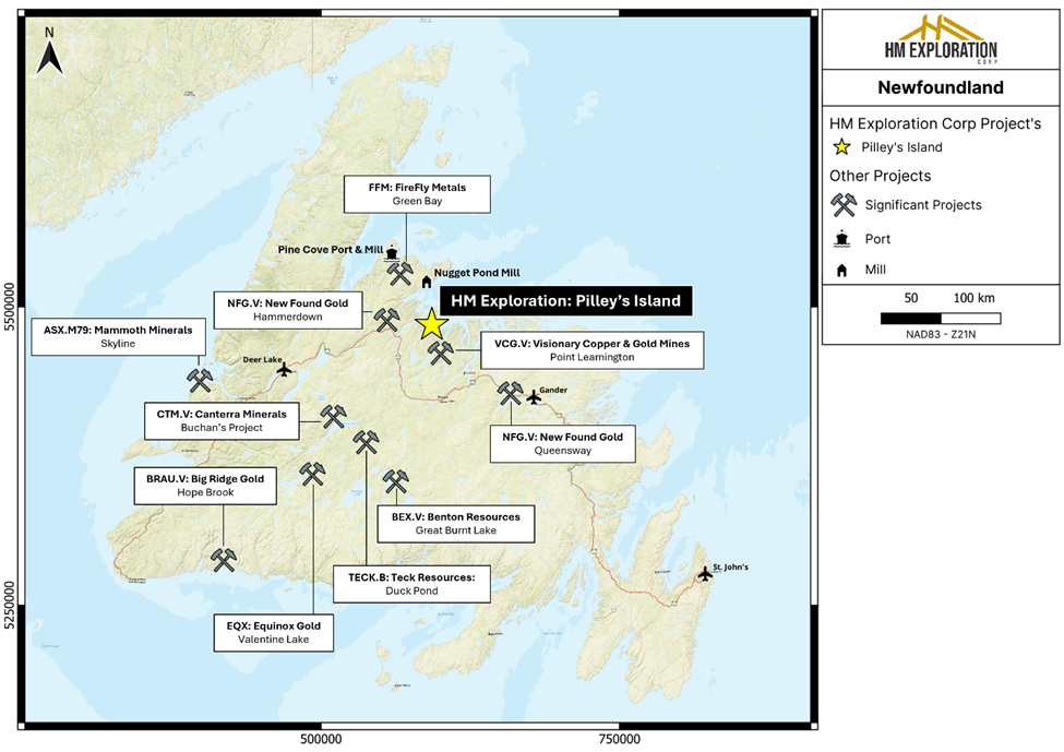 Vancouver, September 29, 2025 – HM Exploration Corp. (“HM Exploration” or “HM” or the “Company”) (CSE:HM) is pleased to announce that it has entered into an option agreement (the “Agreement”) dated September 25, 2025 with Great Atlantic Resources Corp. (the “Optionor”) to acquire a 100% interest in the Pilley’s Island Copper Project (the “Project”), located in Newfoundland, Canada (the “Acquisition”).