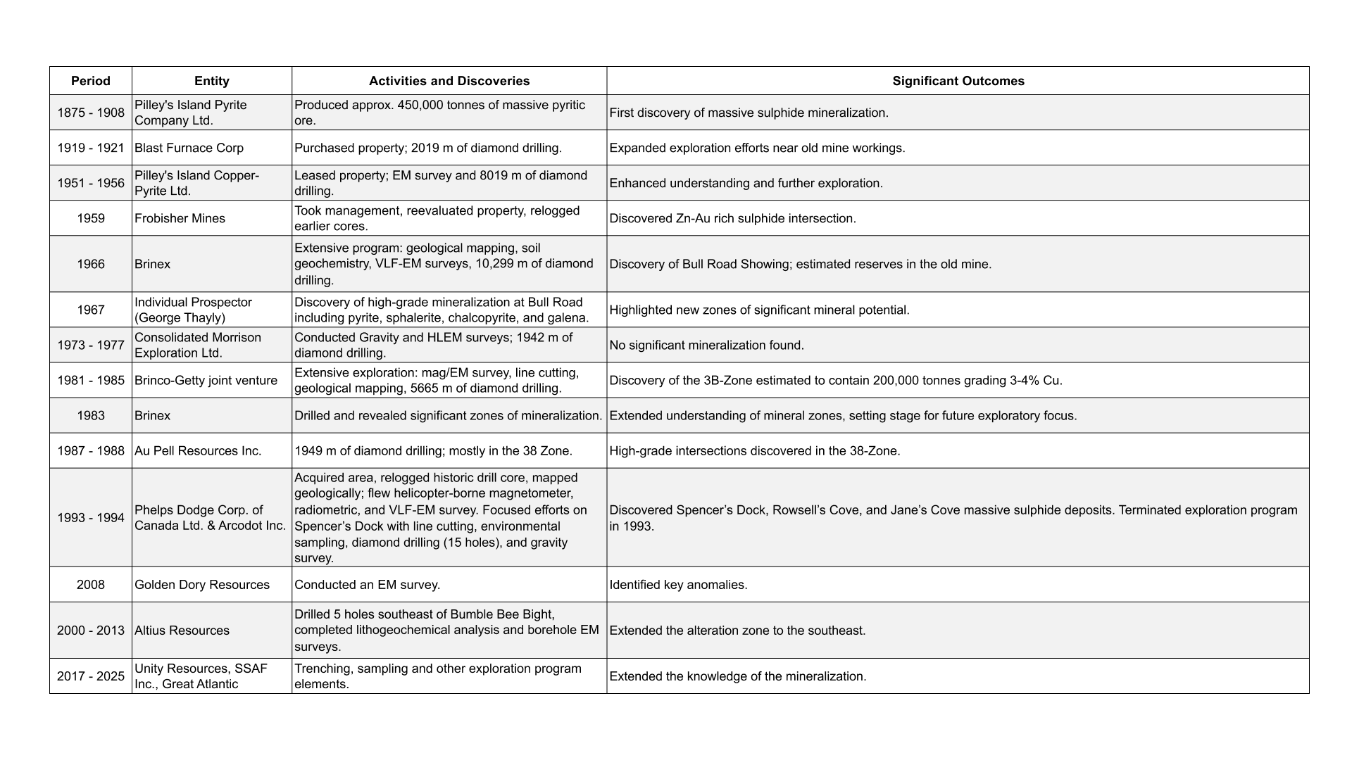 See Appendix for detailed overview of historic exploration work.