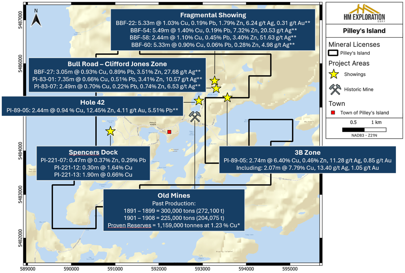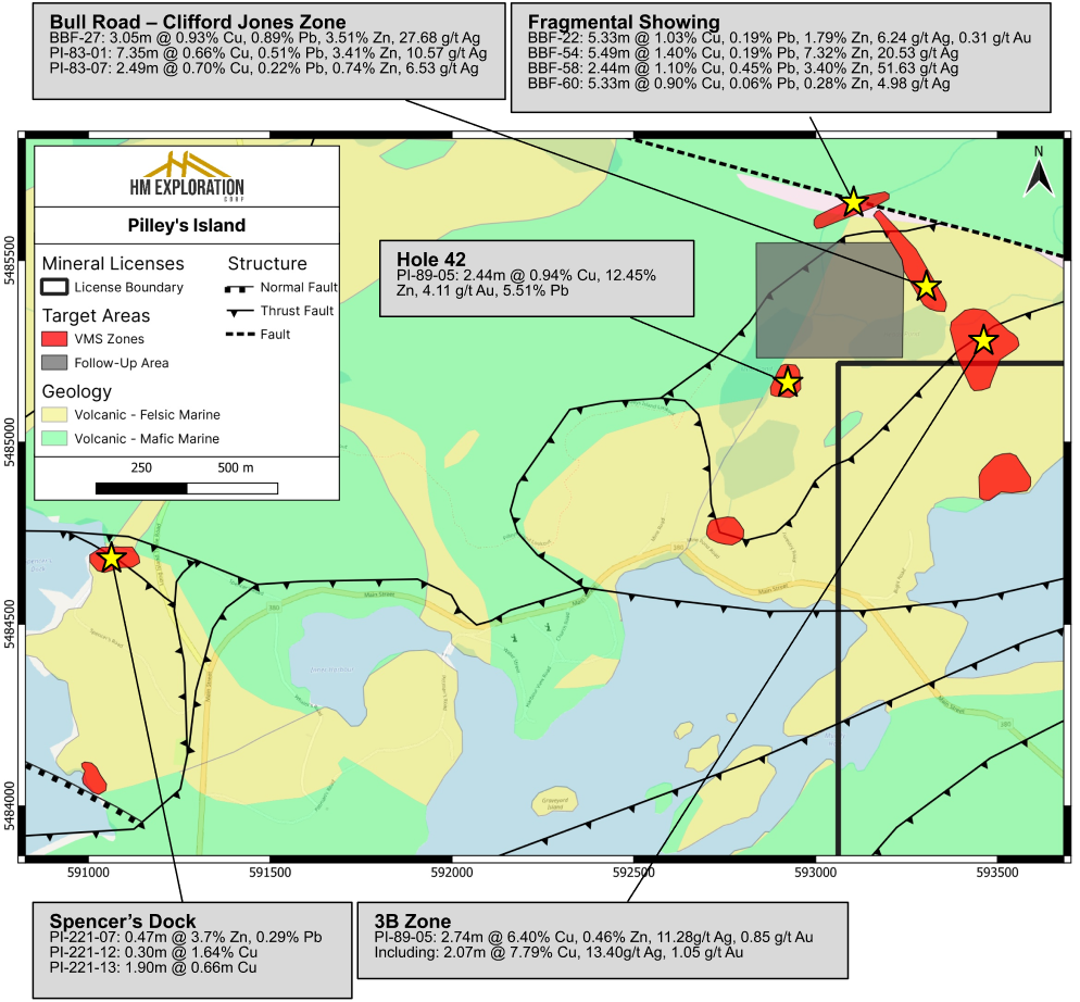 The Pilley’s Island Project hosts high-grade VMS mineralization with a rich mining history and strong exploration potential