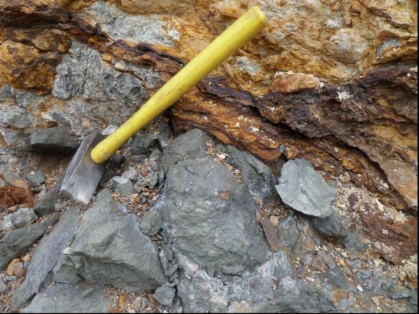 - The Bull Road showing describes a steeply dipping tabular volcanic breccia with high concentrations of copper, lead, zinc, and silver and features massive sulphide clasts.